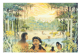 Phil's final painting, "Vision of Palm Beach" (seen below), was of the martyrdom of his brother and the other missionaries by the Aucas (Waodani) by the Curaray River in Ecuador. In the foreground are troubled Aucas who had suspected by then that something terribly wrong was being done. They later recounted that above the trees that loomed over the grisly scene was a heavenly vision of a multitude clad in white, singing. The Aucas could not deny the reality of the scene, but did not understand its significance until after the Gospel had been explained to them and they had come to the saving knowledge of Jesus Christ. Phil had said, "If it's the last thing I do, I need to paint the 'Vision of Palm Beach'," and it was the last thing he did. The only thing lacking was his signature on the painting, which now hangs in the Art Gallery of the 700 Club.